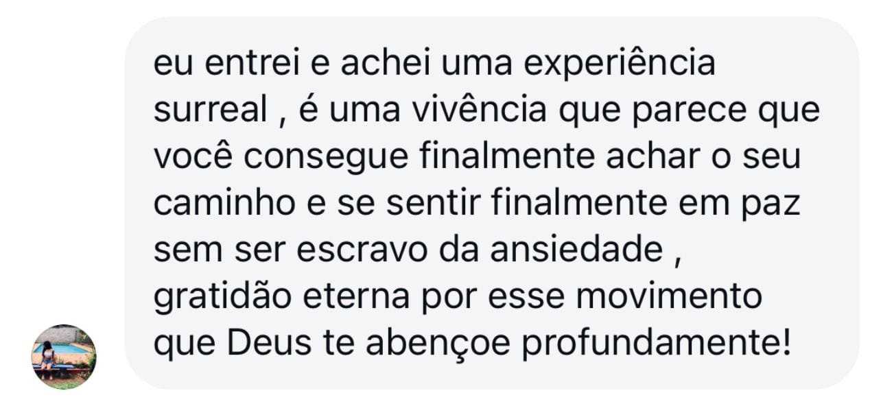 Eu comecei a seguir o Rafa há pouco tempo, e me encantei pelo conteúdo cheio de propósitos, cheio de cura, e o Recomeço foi o meu primeiro evento. Eu vim sem expectativa, mas esperando algo transformador. E me deparei com um evento muito a mais do que a minha expectativa mesmo. Assim como Deus, eu falo que Ele sempre surpreende. Você espera um pouquinho, e Ele usa uma pessoa como o Rafa para transbordar de uma forma inexplicável mesmo. De muita cura, muitas dinâmicas de amor, de propósito, pessoas lindas se curando. Foi incrível. Com certeza, o final. A parte da iluminação. Você ter a certeza que existe um caminho para você evoluir, e realmente levar amor, levar cura. E ver uma pessoa comum como o Rafa fazendo isso com mais de mil pessoas aqui, foi uma das experiências mais lindas que eu vivi mesmo. E eu consegui sentir a iluminação vindo e sendo transbordada. Foi incrível.