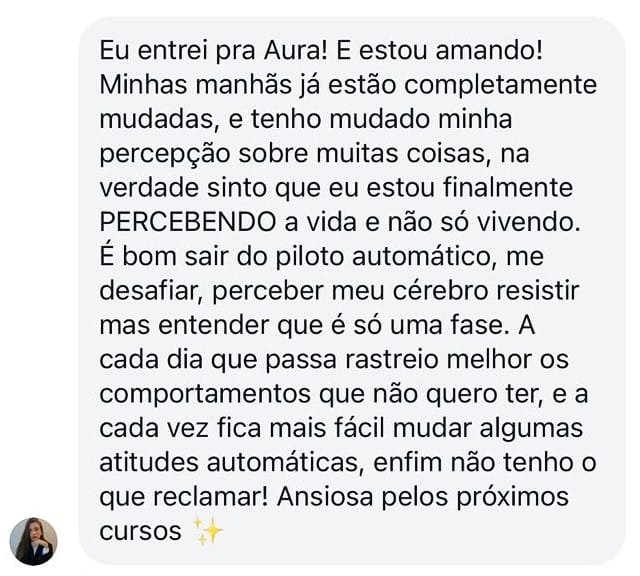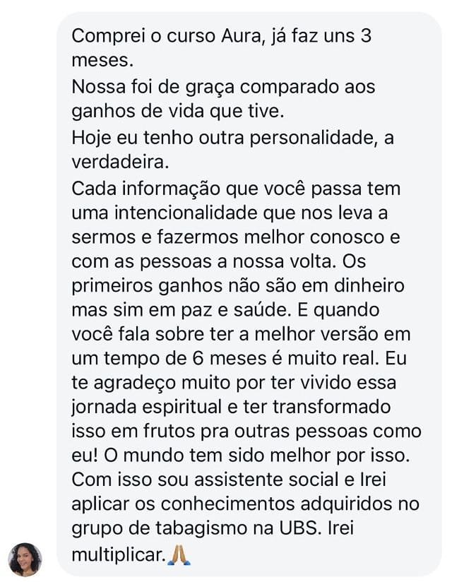 Eu adquiri a mentoria e eu estava buscando autoconhecimento e transformação. Eu sou professora, sou arte-terapeuta, sigo os conteúdos dele, vejo muita maturidade no que ele traz e ao mesmo tempo ele alia essa coisa da ciência com…