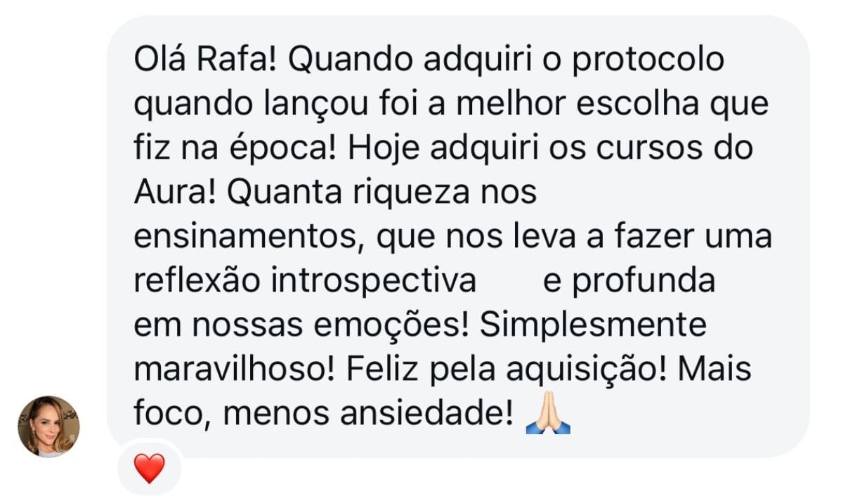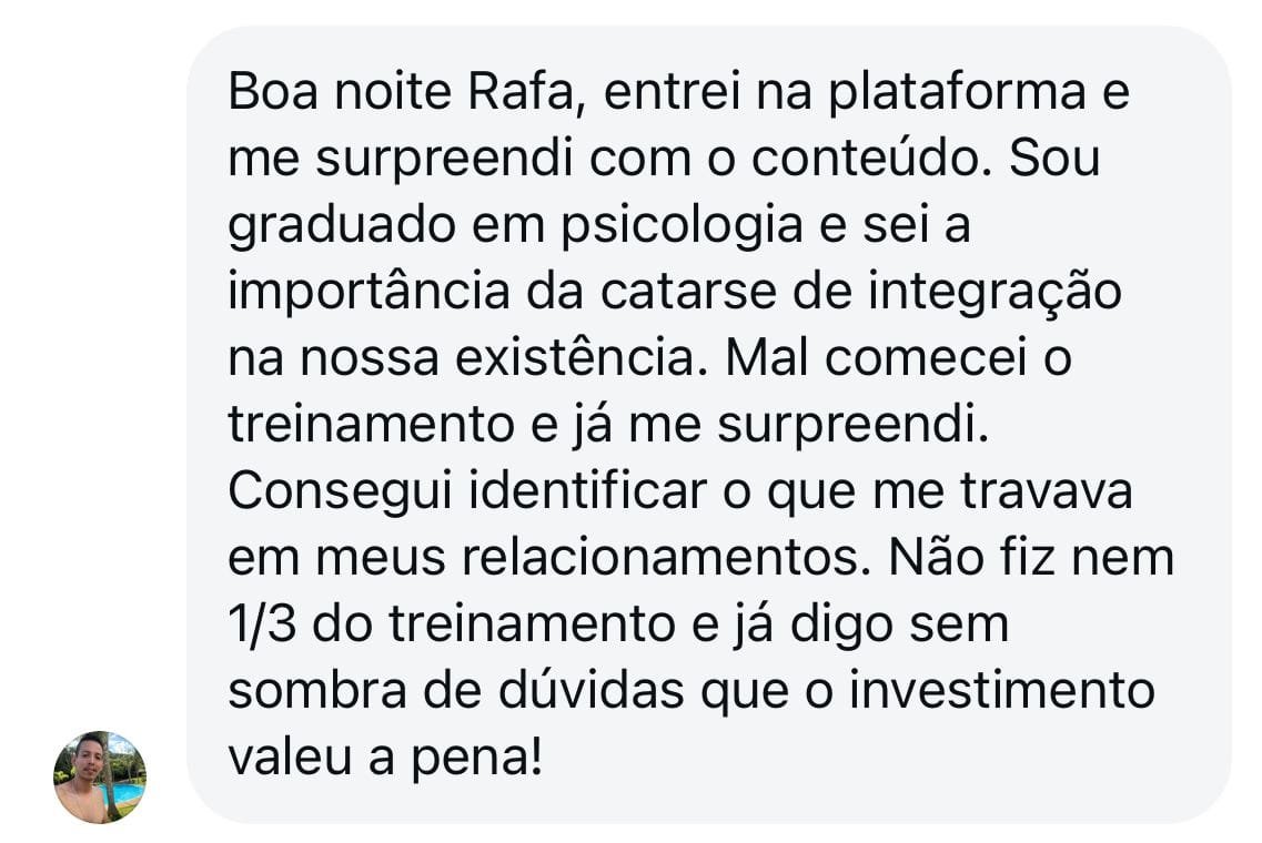 Eu tava buscando o meu propósito. E os vídeos do Rafa sempre me chamaram atenção por isso. Qual caminho a seguir? Então, o protocolo eu encontrei principalmente na prática do exercício da gratidão consciente e constante. Foi excepcional pra mim….